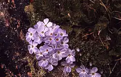 Phlox pulvinata is a species of phlox known by the common name cushion phlox. It is native to the western United States where it grows in mountain and plateau habitat, in rocky subalpine and alpine climates, including exposed tundra habitat. It is a perennial herb taking a flat, dense, cushionlike form on the ground. Its very short stems are lined with hair-fringed lance-shaped leaves each no more than one centimeter (2⁄5 in) long. The plant is among the first to flower in the spring in many areas. It blooms densely, forming carpets of flowers. Each white to pale pink flower has a tubular throat up to one centimeter (2⁄5 in) long and a flat five-lobed corolla.[1]