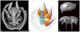 - ^ Eriksson, Mats E.; Terfelt, Fredrik; Elofsson, Rolf; Maas, Andreas; Marone, Federica; Lindskog, Anders; Waloszek, Dieter; Schmitz, Birger; Stampanoni, Marco (2016). "Baring it all: undressing Cambrian 'Orsten' phosphatocopine crustaceans using synchrotron radiation X-ray tomographic microscopy". Lethaia. 49 (3): 312–326. Bibcode:2016Letha..49..312E. doi:10.1111/let.12149.
