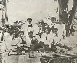 The Phra Thinang Chakri Maha Prasat buildings are composed of nine major and minor halls, structured in a similar scheme to the Maha Monthien Halls from north to south, however the two building groups contrasts greatly in styles. This group of palaces is situated at the centre, between the Maha Montein and Maha Prasat groups.[57] The whole of the Chakri Maha Prasat group was the work of King Rama V and foreign architects in the 19th century. During the reign of King Rama I the area was once an expansive garden, later named Suan Sai (สวนซ้าย) or 'Left Garden', the twin of Suan Khwa (สวนขวา) or right garden, now the Siwalai Gardens. The two gardens were named according to their location on the left and the right of the Maha Monthien buildings. During the reign of King Rama III a new residential pavilion called Phra Tamnak Tuek (พระตำหนักตึก) was constructed for his mother, Princess Mother Sri Sulalai. The new residence was composed of several low-lying buildings and pavilions. King Rama IV expanded the residence and gave it to his consort Queen Debsirindra. Within these buildings King Rama V was born (in 1853) and lived as a child.[58][59]