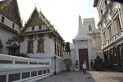 The Outer Court or Khet Phra Racha Than Chan Nork (เขตพระราชฐานชั้นนอก) of the Grand Palace is situated to the northwest of the palace (the northeast being occupied by the Temple of the Emerald Buddha). Entering through the main Visetchaisri Gate, the Temple of the Emerald Buddha is located to the left, with many public buildings located to the right.[19]