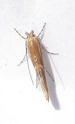 This article incorporates text from this source, which is in the public domain. Keys and description - ^ Kuznetsov V.I., 1990 Gracillariidae; in G.S. Medvedev (ed.): Keys to the insects of the europaean part of the USSR, Vol.IV: Lepidoptera, part 2 (english translation), Oxonian Press Pvt.Ltd., New Dehli, 1987