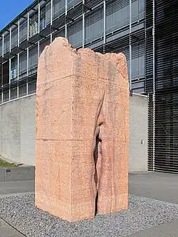 Pi-Chacán (/ˈpiː tʃəˈkɑːn/; also known as Chacán-Pi) is a sculpture by the Peruvian artist Fernando de la Jara that has stood in the grounds of the University of Tübingen's Institute for Microbiology and Virology since 2001.[1] Weighing 32 tons[1] and measuring 4.2 × 1.7 × 1.7 metres (13.8 × 5.6 × 5.6 ft),[2] the sculpture is made from red Verona marble and depicts a vulva. It cost €120,000[1] and was originally intended to have a pool of water at its base, but budgetary constraints prevented this element of the design from being constructed.[3]