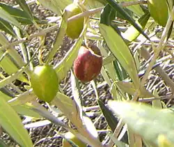 The Picual, also known as Marteña or Lopereña, is an olive cultivar from Spain. Picual olives are the most commonly grown olive today for olive oil production,[1] with production centered in the Spanish province of Jaén.[2] Picual trees are estimated to account for 25% of all olive oil production in the world.[3][4] Naturally, this varietal is very high in oil content, at 20-27% by weight.[5][1]