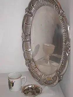 The ceremony traditionally takes place before a minyan of 10 men. The child is sometimes presented on a silver tray, surrounded by jewelry lent for the occasion by women in attendance. This is to contrast with the golden calf, when gold and jewelry was used for a sinful purpose.[21]