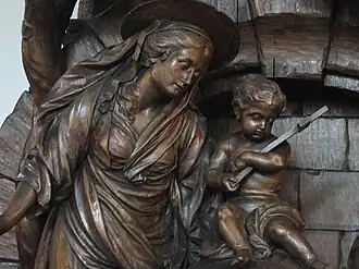 - Our Lady of the Dijle Church: the pulpit and a statue of the Apostle Philip.