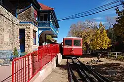 Construction on the line was started in 1889 and the first train reached the summit on June 30, 1891.[1] Cog railways are common in Switzerland and found in other parts of the world (totaling about 50 lines),[2] but this is one of only three such lines remaining in the United States, the others being the older Mount Washington Cog Railway in New Hampshire, and the short Quincy and Torch Lake Cog Railway.