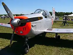 The first prototype P-3.01 was built in 1953 and flew on 3 September the same year[2] with a two-blade propeller. The power of the engine of the aircraft proved to be insufficient. A second prototype to become the military prototype flew in August, 1954, now equipped with a different engine and a three blade propeller. During the evaluation of the military prototype, now designated P-3.02 (HB-HOO, becoming A-801 in January 1956), the aircraft had to perform against a T-34 Mentor that had been brought to Switzerland.[3] The test pilot at the demonstration flight went to the limits and flew a standing "8", knowing, the Mentor would not be able to fly this manoeuvre.[4] After the acceptance by the Swiss Air Force, the service received a pre-series of 12 aircraft type P-3.03 (A-802-A-813). Six additional examples were built and flew with civilian markings, those P-3.04 were later acquired by the Brazilian Navy.[5] The Swiss Air Force then purchased 60 airframes of the type P-3.05 (A-814-A-873)[6] and used their P-3s as a training aircraft until 1983, although it continued to be used as a liaison aircraft for another decade. In 1993–1995, 65 ex-Swiss Air Force aircraft were sold on the private market.[7]