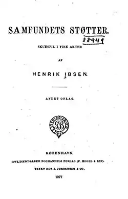 ![]() The cover of the first edition of Pillars of Society by Henrik Ibsen | |