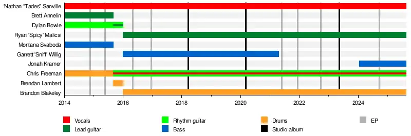 • Dylan Bowie – rhythm guitar, backing vocals (2014–2016)