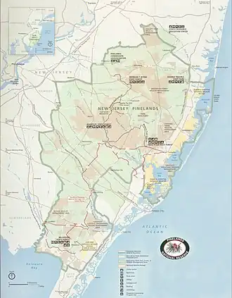 19. ^ "Pinelands Facts" (PDF). New Jersey Pinelands Commission. October 26, 2015. Retrieved January 1, 2018.