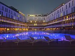 The pool was classified as a French monument historique on 27 March 1990, after having fallen into disuse and closing in 1989.[3] The swimming pool complex was rebuilt from scratch in the style of the previous historic design. The new complex includes two pools and a four star hotel. It opened in May 2014.[4][5][6]