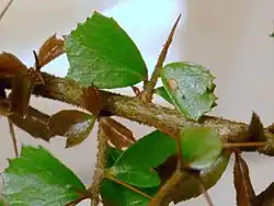 Pittosporum multiflorum, known as the orange thorn, is a shrub growing in eastern Australia.[1] The dense foliage provides a habitat for small birds and animals. It grows on shales or volcanic soils, from Eden, New South Wales north to Queensland, usually in or near rainforest areas.[1]