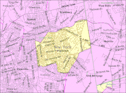 As of a 2020 census, there were 26,973 people; 8,923 households; and 7,243 families residing in the CDP.[12] The population density was 26,217 inhabitants per square mile (10,122/km2). There were 9,281 housing units. The racial makeup of the CDP was 74.8% White, 19.9% Asian, and 2.7% from two or more races. Hispanic or Latino of any race were 4.6% of the population. Plainview, like many other places in northern Nassau County has historically had a large Jewish population,[13] and in recent years has exhibited exorbitant growth in its East Asian population.