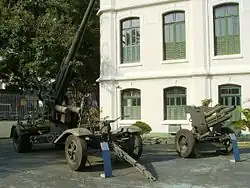 In December 1941, the Natal garrison comprised the 16th Infantry Regiment,[22] 1st Company of the 1st Engineering Battalion[23] and 4th Pack Artillery Group, equipped with two batteries of Schneider 75 millimeter guns.[24] The 1st Group of the 3rd Antiaircraft Artillery Regiment, with two batteries of Krupp 88 mm, arrived on the 15th of January, 1942.[25] The João Pessoa garrison comprised the 15th Infantry Regiment[26] and the 3rd Battery of the 4th Pack Artillery Group.[a] Inland Paraíba had the 22nd Caçadores Battalion in Campina Grande,[27][28] where the 1st Howitzer Group arrived on January 6, 1942.[29] Fortaleza was defended by the prewar 23rd Battalion of Caçadores and a reformed 29th Battalion of Caçadores.[b] The Maceió, São Luís, and Teresina garrisons each consisted of the 20th, 24th and 25th Caçadores battalions, all of them prewar formations.[23]