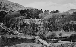 In the late 18th century, Richard Pennant, 1st Baron Penrhyn, built a road from Bangor through the Nant Ffrancon and Dyffryn Ogwen to Betws-y-Coed, and eventually through to Shrewsbury (in use by 1798). In 1801, Lord Penrhyn built the then named Capel Curig Inn. In 1808 the Mail coach which ran from Holyhead to Shrewsbury began running via Capel Curig. The Mail coach ceased operation in 1848 following the opening of the Chester and Holyhead Railway. The inn wasn't built on the road (now the A5), but some distance from it on the present site to facilitate enjoyment of the superb view of Llynnau Mymbyr (the lakes) and the Snowdon horseshoe.