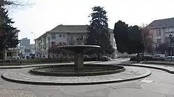 The square, semicircle in design with over-sized walls,[3] was built in 1942 by architects Ovalle and Sarabia, in parallel with the Avenida Diagonal Pedro Aguirre Cerda. The design was selected from an open architectural competition in 1941 by the "Cash for reconstruction and relief" after the 1939 Chillán earthquake. The work was funded by the Pacific Steel Company (CAP) and was completed in the mid-1950s. As a civic hub, it connects the main campus of the University of Concepción with the city center. Originally, it served as the meeting place of European immigrant families who arrived in Concepción. Its surrounding buildings, neoclassical in style, are of the late 1940s era, with interior terraces and balconies influenced by Parisian around of the square.[3] There were also homes of foreign engineers and technicians who emigrated to Concepción to work on CAP and later in Siderúrgica Huachipato. Still later, several of these houses were inhabited by Chilean residents. In 1950, a round fountain was installed in the center of the square.