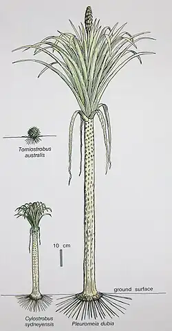 Pleuromeia dubia is a tall species for the genus, with distinctive elongate leaf scars, and known from the Early Triassic of Australia and South Africa. Like other species of Pleuromeia it was a survivor of the marked greenhouse spike at the end of the Early Triassic.[1] It was originally assigned to the genus Gregicaulis, and its placement in the genus Pleuromeia has been questioned, due to its significant differences to the core Eurasian members of the genus.[2]