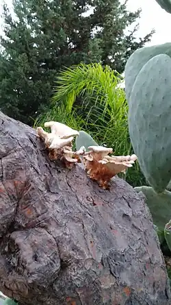 Pleurotus opuntiae is a species of Agaricales fungus that grows in the semi-arid climate of central Mexico[1] and in New Zealand,[2] whose mushroom is edible and considered a delicacy in the cuisine of indigenous peoples of Mexico. It is known as hongo de maguey común in Mexican Spanish, seta de chumbera/nopal in Peninsular Spanish, and kjoo'wada in Otomi language.[3] Phylogenetic research has shown that while it belongs to the Pleurotus djamor-cornucopiae clade, it forms its own intersterility group,[4] but it has also been claimed to be genetically inter-incompatible with Pleurotus australis, Pleurotus ostreatus (extra-limital), Pleurotus pulmonarius and Pleurotus purpureo-olivaceus of New Zealand.[2]