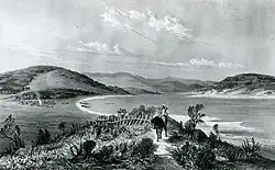 Ngāti Toa people took control of the Porirua coast in the 1820s.[3] In the 1840s the area where Plimmerton is situated was the home of Te Rauparaha, who had his main residence at Taupō pā. Te Rauparaha was captured by 200 British troops and police on 23 July 1846 near the southern end of Motuhara Road. A tiny historic reserve contains a cabbage tree that may be descended from the one he was said to have been captured near, and a plaque. In 1847, most of Ngāti Toa’s land in Porirua was sold to the Crown for the New Zealand Company by a group of eight chiefs, and Taupō was retained as part of a Māori reserve (one of three) that extended from Paremata to Paekākāriki.[4] However, the following year Te Rauparaha was released and retired to Ōtaki; by 1850 Taupō pā was deserted.[5][6]