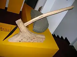 Some ancient hoes, like the Egyptian mr, were pointed and strong enough to clear rocky soil and make seed drills, which is why they are called hand-ards. However, domestication of oxen in Mesopotamia and the Indus Valley Civilisation, perhaps as early as the 6th millennium BC, provided mankind with the draft power needed to develop the larger, animal-drawn true ard (or scratch plough). The earliest surviving evidence of ploughing has been dated to 3500–3800 BCE, on a site in Bubeneč, Czech Republic.[16] A ploughed field, from c. 2800 BCE, was also discovered at Kalibangan, India.[17] A terracotta model of the early ards was found at Banawali, India, giving insight into the form of the tool used.[18] The ard remained easy to replace if it became damaged and easy to replicate.[19]