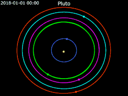 Pluto | /ˈpluːtoʊ/ | Pluto, Roman god of the underworld | ![]() | 2376.6±3.2 | 1305±7 | 2035[34] | 6.38723 | 1 : 1 | 0.0022[f] | 0.001 | 15.1 | 1930 | |
