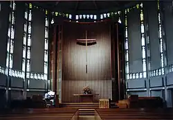 In the summer of 2014, Plymouth Church began a project to renovate the sanctuary. The chief concern of the project was to replace the original pipe organ that had been damaged during the 6.8 Nisqually earthquake that hit the Puget Sound region at 10:54 am PST (18:54 UTC) on Ash Wednesday, February 28, 2001.[7] The organ has been replaced with a new tracker organ, Opus 140, built and installed by C.B. Fisk Inc. in Gloucester, Massachusetts. The renovation project also involved repairing major structural damage to the Nave's roof trusses. It addressed acoustical problems with the space and saw the installation of a new energy-efficient lighting system. The new organ was inaugurated with a series of concerts in fall/winter 2015-16.[8]