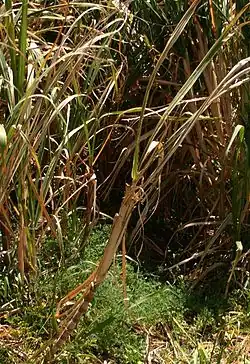 A number of grasses are invasive species that damage natural ecosystems, including forms of Phragmites australis which are native to Eurasia but has spread around the world.[64][65]