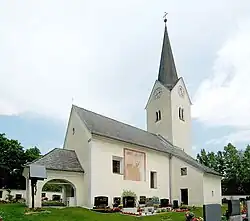 The parish church of Poggersdorf ( Pokrče ) as well as its filial churches of Wutschein (Bučinja vas), Wabelsdorf (Vabnja vas) and Eiersdorf (Virnja vas) are formally bilingual (German / Slovenian).