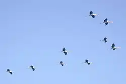 In October these waterbirds arrive from Rann of Kutch, Eastern Siberia, Northern Russia, Central Asia and parts of Europe for their feeding season and start returning to those breeding places in January. These waterbirds include threatened species such as spot-billed pelican, Nordmann's greenshank, spoonbill sandpiper and black-necked stork. Near threatened species include black-headed ibis, Asian dowitcher, lesser flamingo, spoonbill, darter and painted stork.[5]
