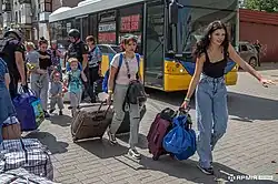 Russian forces moved south of Zhelanne to capture Novozhelanne and Zavitne around 18 August, confirmed by a soldier hoisting the Russian flag on the southern of the two settlements.[48] On 19 August, civilians continued evacuating from Pokrovsk and surrounding settlements, while the city's head Serhii Dobriak announced that families with children would be forced to evacuate Pokrovsk due to continuing Russian advances starting 20 August, and would have at most two weeks to leave, while those in Myrnohrad would have only a few days. Dobriak additionally said that utilities and services would "gradually be winding down" within a week in Pokrovsk.[49][50][51] Russia advanced on 18 and 19 August to fully capture Zhuravka and to control all territory east of the Vovcha River in the area, capturing Mezhove and Soniachne in the process.[52] Russia continued to attack Novohrodivka and other settlements east of Pokrovsk;[53] military analyst Franz-Stefan Gady said that Russia was likely "engaging the last proper defensive line outside of the town".[54]