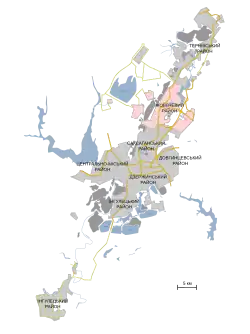 Pokrovskyi District[1] (Ukrainian: Покро́вський райо́н), known until 2016 as Zhovtnevyi Raion (Ukrainian: Жовтне́вий райо́н),[2][3] is an urban district of northern Kryvyi Rih, south-central Ukraine. It is located along the river Saksahan. Among other districts of the city, it has about 6,000 hectares making it the largest in terms of area, with a population of over 142,955 people (2001). The district has 271 streets with a total length of 527 km, of which 192 are private sector streets.
