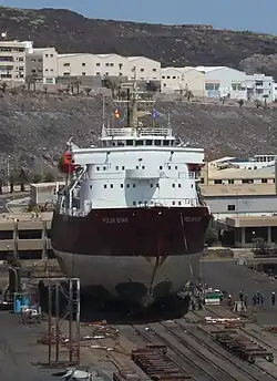 The Polar Star was left in drydock at the Astican Shipyard[10] in Las Palmas with unpaid repair bills reaching $1.6 million.[8] The receiver's September 27, 2011 report to the Nova Scotia Supreme Court stated there was little prospect of a significant return to creditors by pursuing a sale of the ship, which had $2.51 million in charges and liens against it by that time.[8] The court-appointed receiver, PricewaterhouseCoopers (PwC), concluded that Polar Star should be abandoned to Astican Shipyard, which was expected to pursue a sale through the Spanish courts. Martin Karlsen objected to abandoning the vessel, which was appraised at $8 million according to the receiver's report and had insurance coverage for the damage repairs.[11] However, any sale by the receiver was complicated by the fact that there was a substantial Spanish lien on the ship, and it would also require costly sea trials before it could be re-certified to sail.[5] Two months later in November 2011, a potential buyer claimed the vessel had deteriorated to the point it could only be sold for scrap.[12] This was disputed by the receiver who noted the vessel was still in dry-dock.[12][13]
