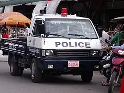 Law enforcement in Cambodia is handled by the Cambodian National Police, one of three General Departments within the Ministry of the Interior. The National Police numbers 64,000 and is divided into four autonomous units and five central departments.[1] The National Police share significant functional overlap with the Military Police (officially the National Gendarmerie), which functions within the Ministry of Defense.[2]
