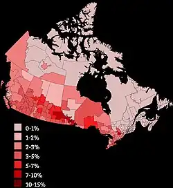 - ^ Government of Canada, Statistics Canada (2020-05-01). "Ethnic Origin (247), Single and Multiple Ethnic Origin Responses (3) and Sex (3) for the Population of Canada, Provinces, Territories, Census Metropolitan Areas and Census Agglomerations, 2006 Census - 20% Sample Data". www12.statcan.gc.ca. Retrieved 2022-09-23.