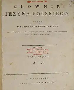 - ^ Adamska-Sałaciak, Arleta (2001-01-01). "Linde's Dictionary: A landmark in Polish lexicography". Historiographia Linguistica. 28 (1–2): 65–83. doi:10.1075/hl.28.1.06ada. Archived from the original on 2015-09-24. Retrieved 2021-06-14.