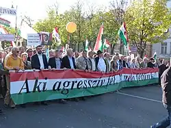 A political demonstration is an action by a mass group or collection of groups of people in favor of a political or other cause or people partaking in a protest against a cause of concern; it often consists of walking in a mass march formation and either beginning with or meeting at a designated endpoint, or rally, in order to hear speakers. It is different from mass meeting.