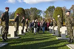 Polish troops took part in the liberation of a number of nations from German occupation, which is, for example, particularly strongly remembered in Breda in the Netherlands.[47] There is a Polish military cemetery, where Polish general and war hero Stanisław Maczek is buried, and the anniversary of the liberation is commemorated in the city,[47] also by supporters of the local football club NAC Breda (see Netherlands–Poland relations).[48]