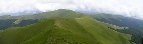 Polonynian Beskids or Polonyne Beskids (Ukrainian: Полонинські Бескиди; Polish: Beskidy Połonińskie) is a geological group of mountain ranges of the Eastern Beskids, within the Outer Eastern Carpathians. It is one of two parallel mountain ridges of the Eastern Beskids, situated in western parts of modern Ukraine. They are stretching parallel to the Wooded Beskids on the northeast, and Vihorlat-Gutin Area to the southwest.[1]