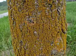 Polycauliona candelaria is a species of corticolous (bark-dwelling) lichen in the family Teloschistaceae.[3] It was one of the first lichens formally described by Swedish naturalist Carl Linnaeus in his 1753 work Species Plantarum. Since then, the taxon has acquired a long and extensive synonymy.[2] It was finally transferred to the genus Polycauliona by Ulf Arup and colleagues in 2013, as part of a molecular phylogenetics-based restructuring of the family Teloschistaceae.[4] In North America, one vernacular name is shrubby sunburst lichen.[5]