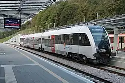 The PKM has 11 stations and stops along the route, the twelfth is being built and due to open in 2023.[5] The company also owns and operates further two stops, Gdynia Karwiny and Gdynia Stadion, located on the section of line 201 connecting Gdańsk Osowa and Gdynia Główna.[6] The line has only been recently electrified at the national standard of 3 kV DC, though regular service is still provided by ten DMUs that were ordered from Pesa SA of Bydgoszcz costing 114 million zł ($34 million).[7][8]