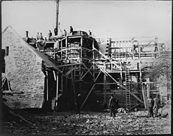 The school opened on October 3, 1894,[2][3] founded by William E. Peck and his wife Harriet.[3] In the first decade of the 1900s, Pomfret was transformed from mainly Colonial Revival buildings to a "planned institution."[4] By 1906, architect Ernest Flagg had designed a master plan for the school.[4] The pavilion arrangement reflected the influence of Thomas Jefferson's design for the University of Virginia.