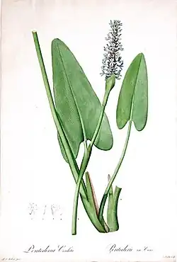 Pontederia is a genus of tristylous aquatic plants, members of which are commonly known as pickerel weeds. Pontederia is endemic to the Americas, distributed from Canada to Argentina, where it is found in shallow water or on mud.[1] The genus was named by Linnaeus in honour of the Italian botanist Giulio Pontedera.[2]