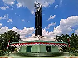The equatorial line passing Pontianak is marked by a monument north of the city center. Between 19 and 21 March and 21–23 September (the equinoxes), solar culmination can be observed near the monument, where the setting of the sun will be exactly at 0° at noon (12:00), causing shadows at the monument and everything nearby to disappear for a few seconds.[17]