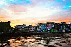 Pontianak[a], also known as Khuntien in Teochew and Hakka, is the capital of the Indonesian province of West Kalimantan, founded first as a trading port on the island of Borneo, occupying an area of 118.21 km2 in the delta of the Kapuas River, at a point where it is joined by its major tributary, the Landak River. The city is on the equator, hence it is widely known as Kota Khatulistiwa (Equatorial City). The city center is less than 3 kilometres (2 mi) south of the equator. Pontianak is the 23rd most populous city in Indonesia (as of 2023), and the fourth most populous city on the island of Borneo (Kalimantan) after Samarinda, Balikpapan and (Malaysia's) Kuching; it is now slightly ahead of Banjarmasin.[3] It had a population of 658,685 at the 2020 Census[4] within the city limits, with significant suburbs outside those limits. The official estimate as of mid-2024 was 680,852 (comprising 340,426 males and 340,426 females - a gender ratio of exactly 1:1).[1]