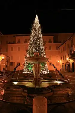 The Piazza Pia in front of it is the largest square in Albano's historic center, opened in the seventeenth century as part of the urban reorganization of the town to create the "trident" of streets. It took its current name in 1847, in memory of Pope Pius IX's visit to Albano the previous year: the name of the square has since undergone a series of ups and downs, which have not, however, changed its popularly recognized name.[67] The square has been the scene of several visits by popes since that of Pius IX: from the gate of the Pontifical Villas overlooking the square, which is permanently guarded by the police, Paul VI in 1963,[68] John Paul II in 1982[69] and Benedict XVI in 2008 have in fact left.[70]