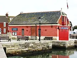 The crew facilities and storeroom occupies one part of a larger brick-built building facing the water on Poole Quay. The upper floor is set into the roof with a large window overlooking the lifeboat's pontoon. The boathouse for the ILB is moored alongside this pontoon adjacent to the Lifting Bridge.