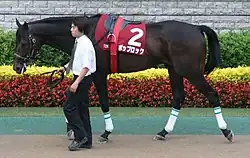 On his next start, he managed to get the closest to Deep Impact (who won the Japanese Triple Crown in 2005 and the Japan Cup in 2006) in the 2006 Group 1 Arima Kinen and was beaten to second by Admire Moon in the 2007 Japan Cup.[3][4][5]