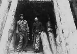 During the Austro-Hungarian Empire when the region was part of the Austrian Partition of Poland, there was a railway line built by the authorities along the valley of the Poprad, between 1874 and 1876. It was a major undertaking, because the installation of tracks was severely limited by the river on the one side, and steep mountain slopes on the other.[5] The engineering firm Koller und Gregorsen from Vienna won the bid for the construction of the entire line Tarnów-Leluchów-Orlov including the tunnel Żegiestów-Andrzejówka. The tunnel, some 511 metres (559 yards) in length, collapsed, causing a major human catastrophe. Over 120 Polish railway workers from nearby settlements were killed in the rubble.[6] Rescue attempts proved impossible and the place was left undisturbed as a mass grave. As a result of the accident, the idea of running a double track was abandoned as a whole. A much narrower tunnel was dug out around the site of the miners' entombment, allowing for a single track which was continued along the entire stretch of the railway line.[6]