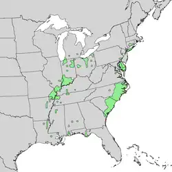 This species is indigenous to warm, temperate regions in North America, although nowhere is it considered abundant. It is found in wet bottomland forests.[4] Swamp cottonwood can be found along the east coast of the United States from Connecticut to Georgia, as well as northwestern Florida and west to Louisiana.[4] It also grows in the Mississippi valley, Ohio and southern Michigan.[4]