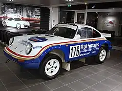 Jean-Pierre Nicolas managed to win the 1978 Monte Carlo Rally with a private 911 SC, and Porsche's second, and so far last, WRC win came at the 1980 Tour de Corse in the hands of Jean-Luc Thérier. In the European Rally Championship, the 911 was driven to five titles, and as late as 1984, Henri Toivonen took his Prodrive-built and Rothmans-sponsored 911 SC RS to second place behind Carlo Capone and the Lancia Rally 037. In 1984 and 1986, the Porsche factory team won the Paris Dakar Rally, also using the 911 derived Porsche 959 Group B supercar.